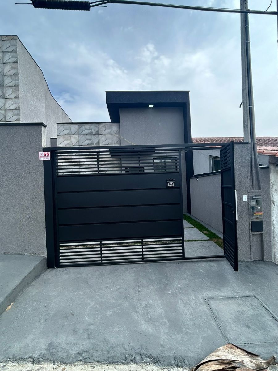 Diferenciais de Alto Nível: Fechadura eletrônica na sala, portão automático, janelas em alumínio premium, e a combinação de pisos laminados (quartos) e porcelanatos (sala e cozinha).